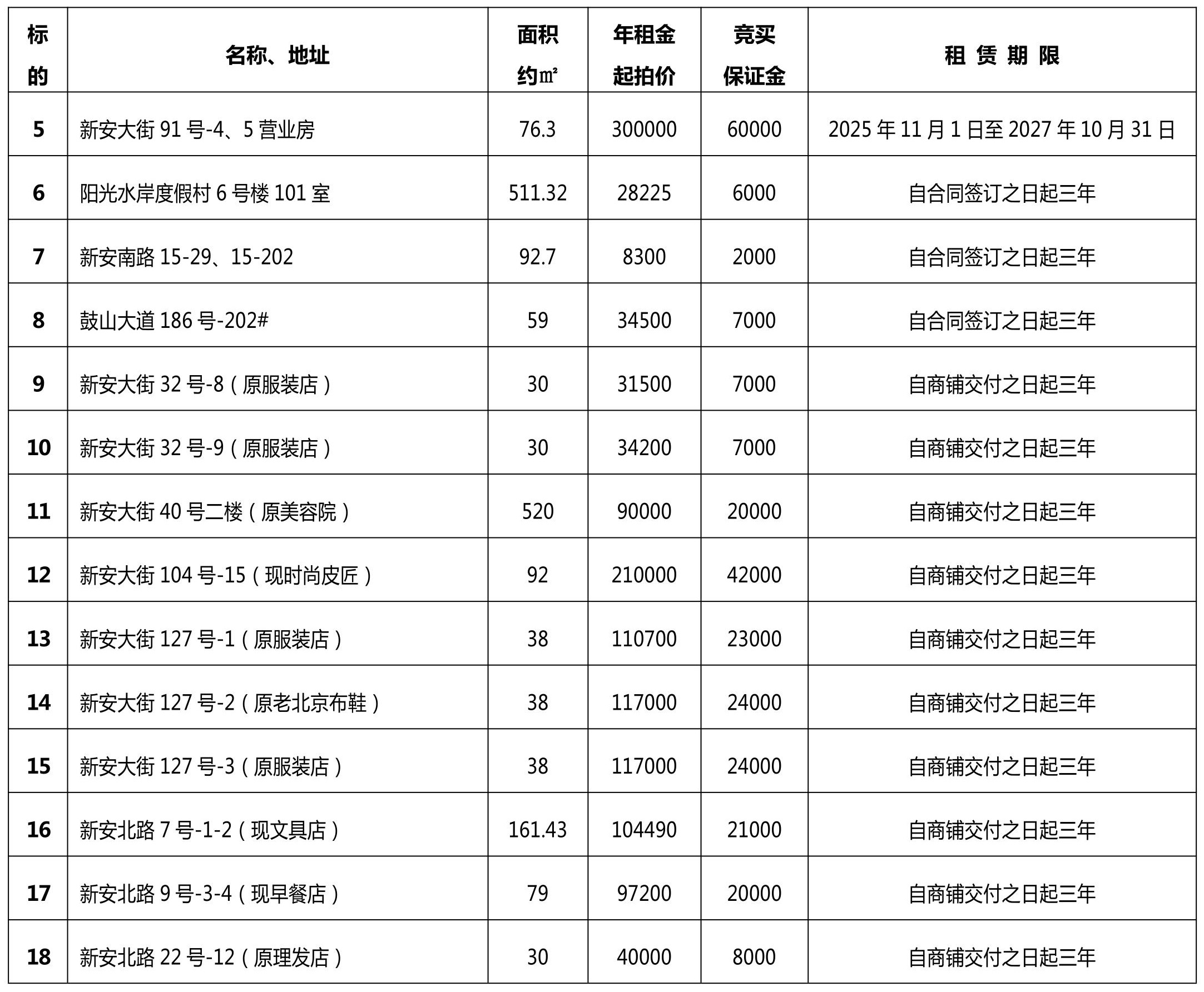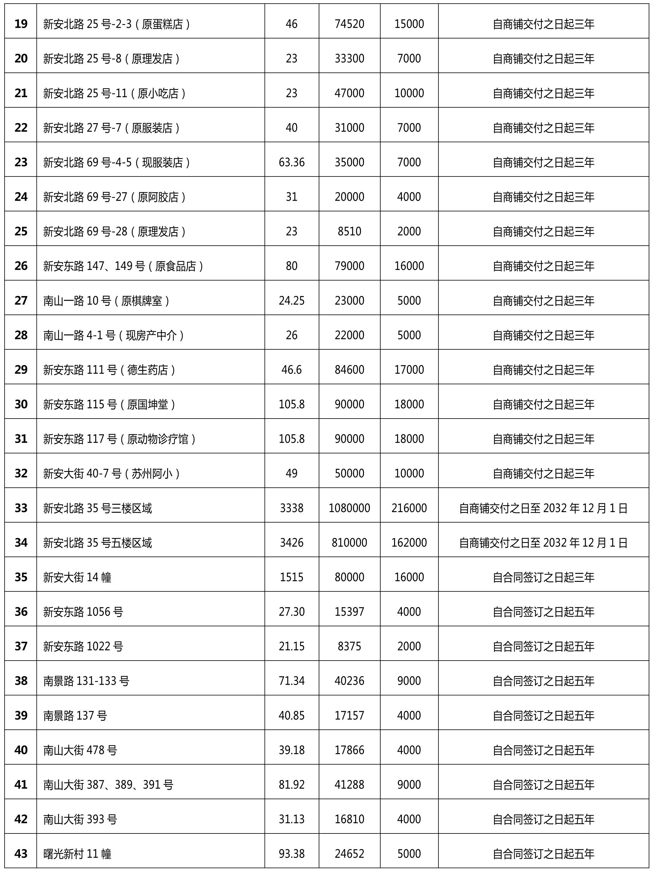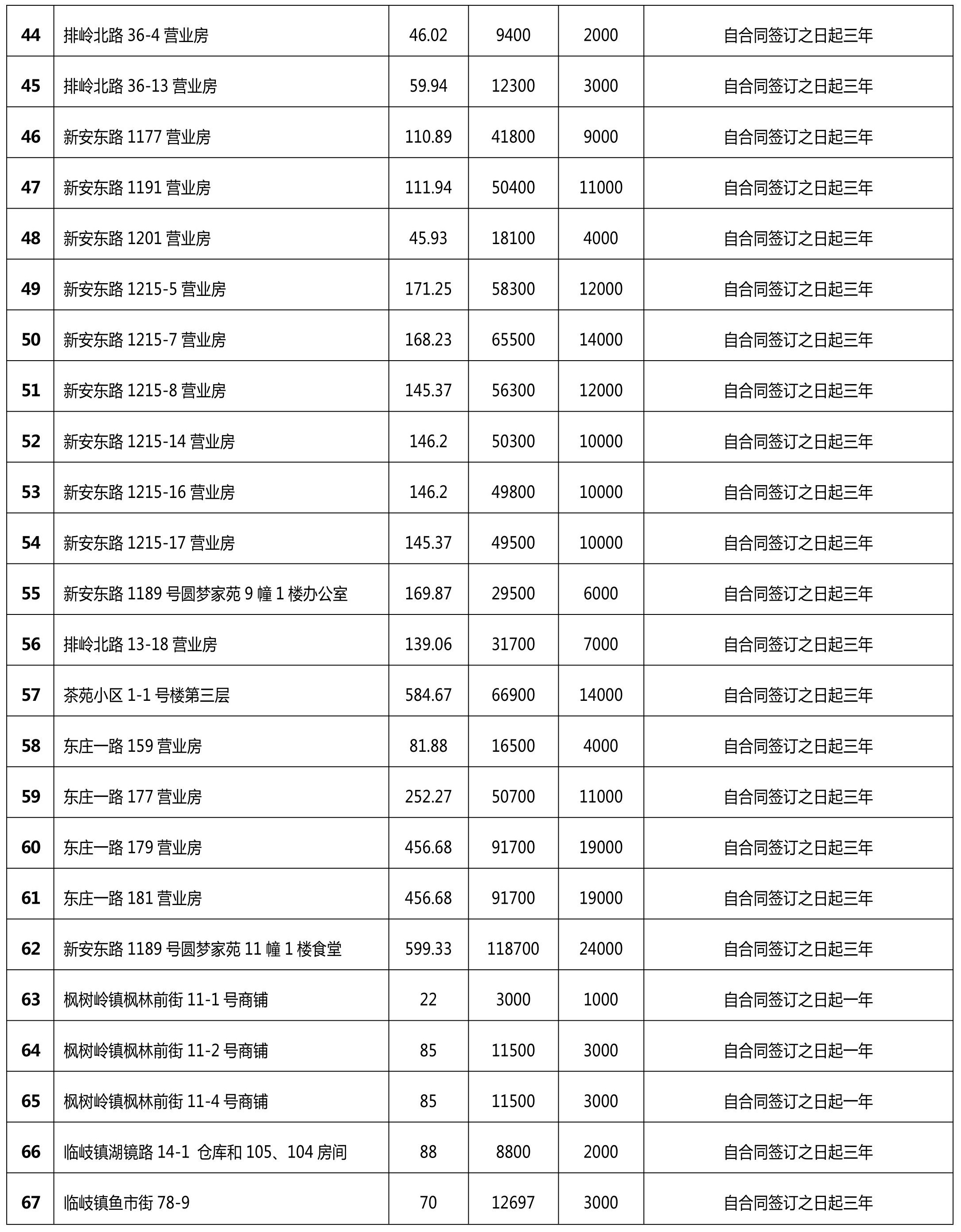 (二)房屋(营业房、商铺、仓库)租赁使用权(见下表,金额单位:元)
